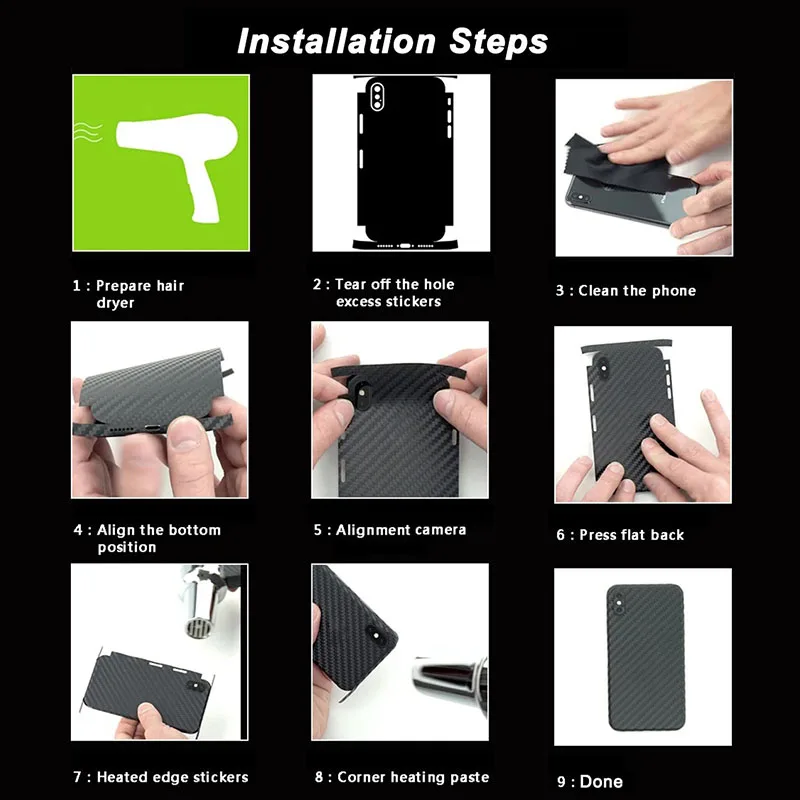 3D Carbon Fiber Skins Film Wrap Phone Back Sticker For iPhone 13 Pro Max 12 Mini SE 2020 11 Pro Max XS MAX XR X 8 7 6S Plus Skin