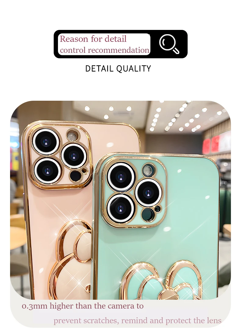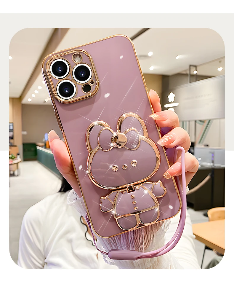 Mirror Rabbit Strap Plating Case For iPhone 14 11 12 13 Pro Max 13 12 Mini 11 12 13 14 8 7 6 6S Plus X Xr Xs Max SE 2020 Cover
